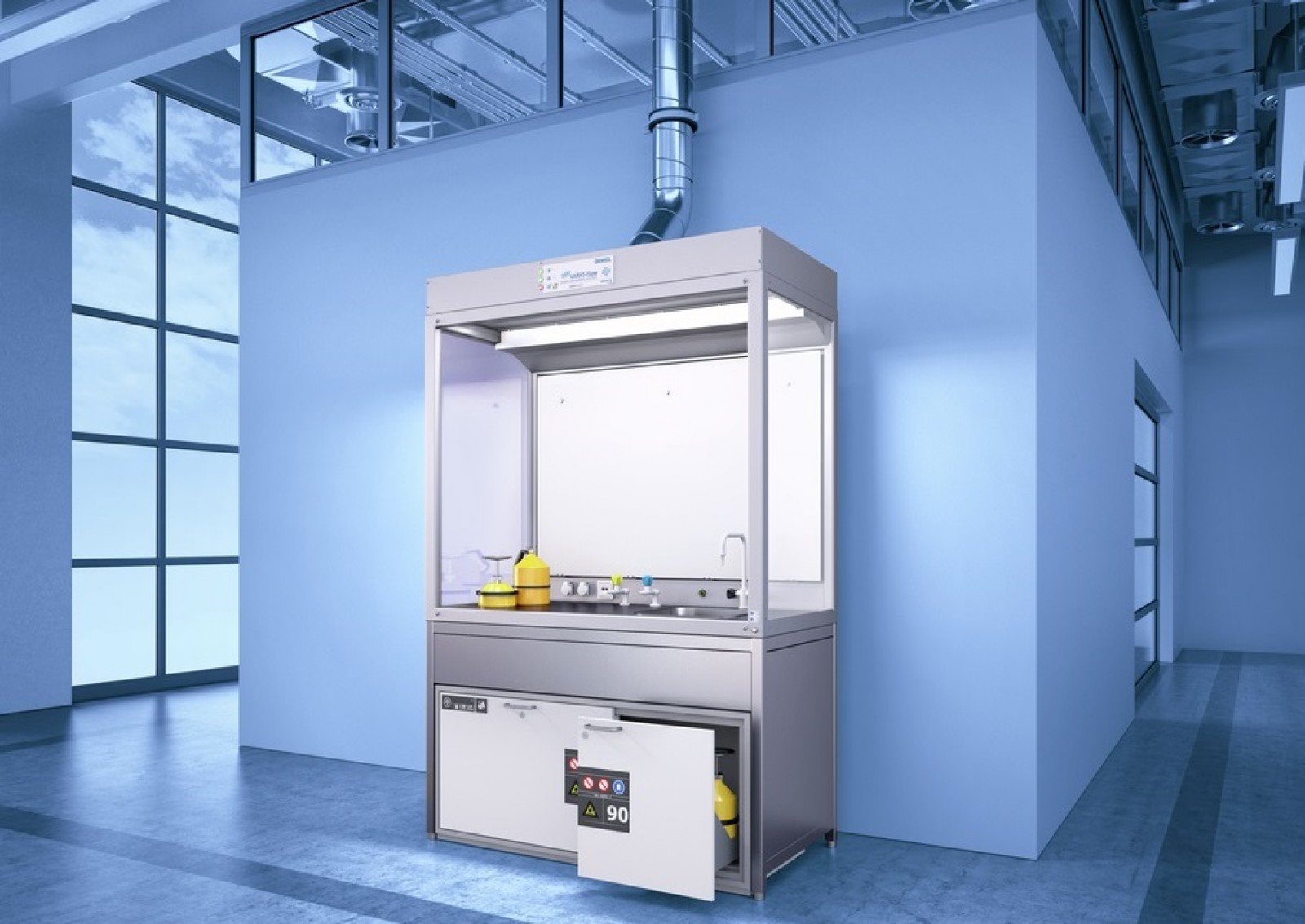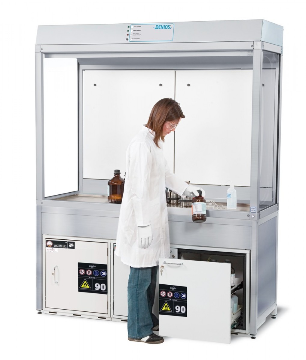 A VARIO-Flow GAP alsószekrényekkel kombinálható. Ez lehetővé teszi a veszélyes anyagok tárolását közvetlenül a munkahelyen